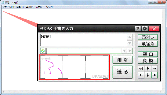 パソコンに添付のらくらく手書き入力を使用すれば、キーボードの代わりに、付属のペンを使って文字を入力できます。