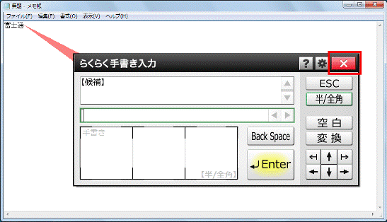 - 文字の入力が終わったら「×」ボタンをタップし、「らくらく手書き入力」を閉じます。