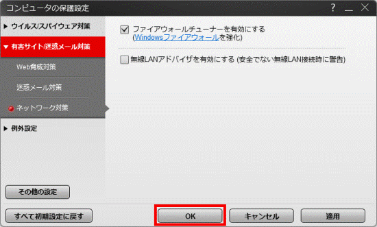 ウイルスバスター クラウドをインストールした直後の状態では、ファイアウォールチューナー機能は無効に設定されています。