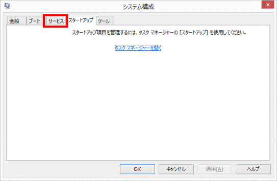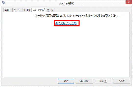 - 「スタートアップ項目を管理するには、タスクマネージャーの [スタートアップ] を使用してください。」と表示されます。