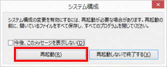 - 「システム構成の変更を有効にするには、再起動が必要な場合があります。」と表示されます。