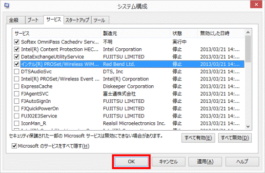 - 「OK」ボタンをクリックし、「システム構成」を閉じます。