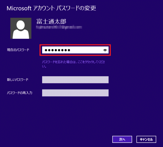 「現在のパスワード」欄に、現在設定しているパスワードを入力します。