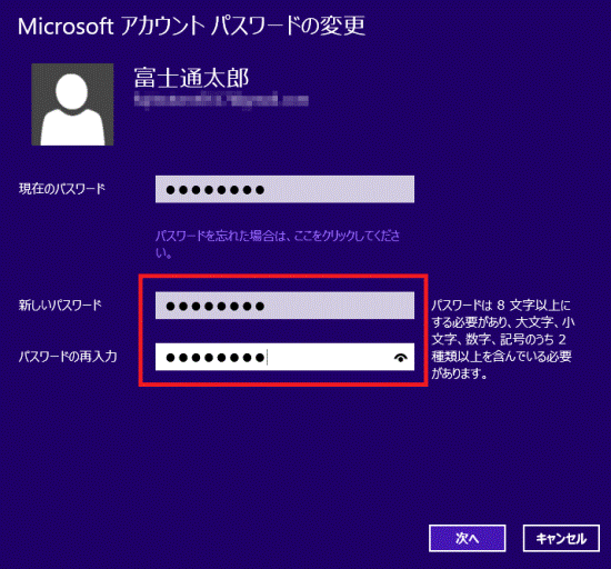 - 「Microsoft アカウント パスワードの変更」と表示されます。