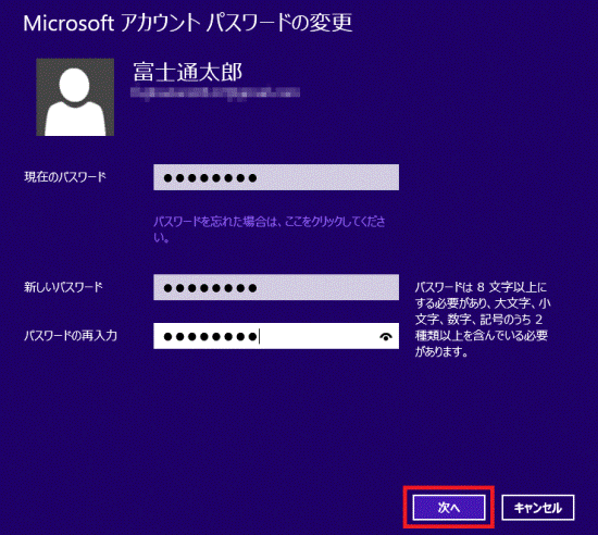 [Windows 8.1/8] Microsoft アカウントのパスワードを変更する方法を教えてください。