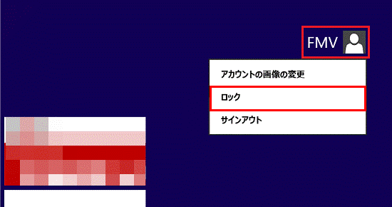【Windows】キーを押すか、画面の左下の角にマウスポインターを移動し、表示される「スタート」をクリックしてスタート画面に戻ります。 - スタート画面右上にあるユーザーアカウント名をクリックし、表示されるメニューから「ロック」をクリックします。