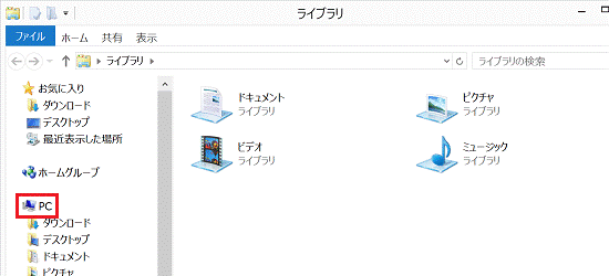 - 左側の一覧から「PC」、または「コンピューター」をクリックします。