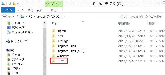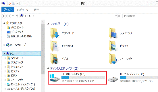 - 「ローカルディスク(C:)」をダブルクリックします。