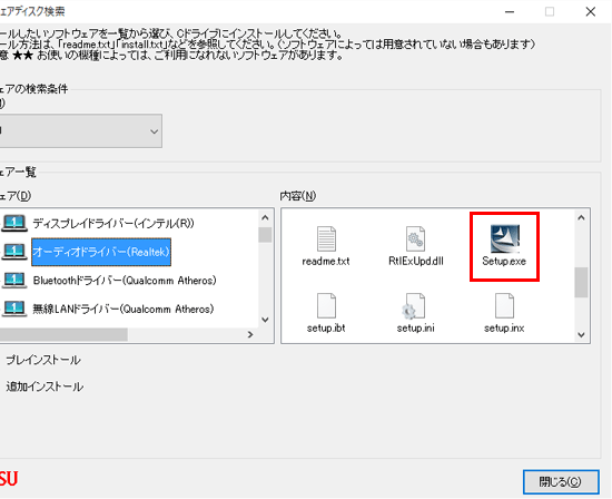 - 「内容」欄の「Setup.exe」アイコンをダブルクリックします。