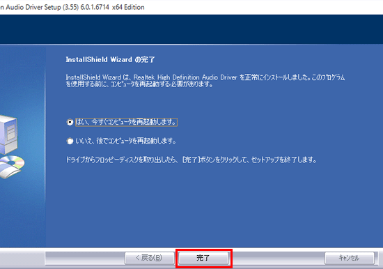 「はい、今すぐコンピューターを再起動します。」をクリックします。
