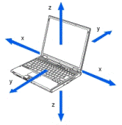 Shock Sensor Utility で設定を行うと、内蔵の「HDD加速度センサー(3D加速度センサー)」が、パソコンが持ち上げられたときに発生する加速度を感知し、パソコンをパスワードでロックします。