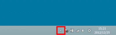 - デスクトップ画面の通知領域にある「▲」ボタンまたは「<」ボタンをクリックします。
