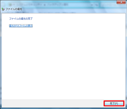 データを復元する場所を「次の場所」に設定した場合は、復元先を指定してください。 - 「完了」ボタンをクリックします。