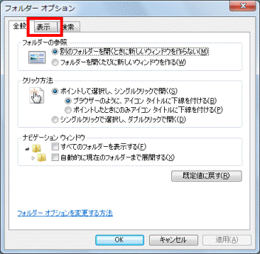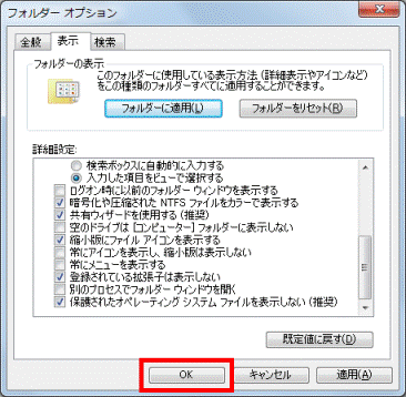- 「OK」ボタンをクリックし、「フォルダーオプション」を閉じます。