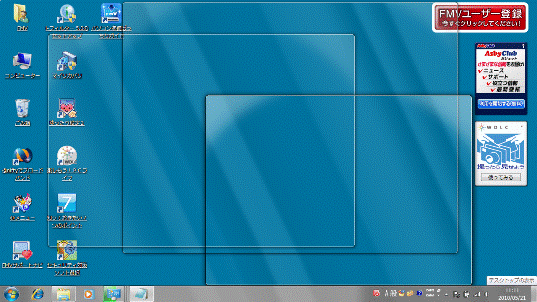 「デスクトップの表示」ボタンにマウスポインターを合わせると、すべてのウィンドウが透明になり、ウィンドウを閉じずにデスクトップを確認できます(Windows 7 Starterを除く)。