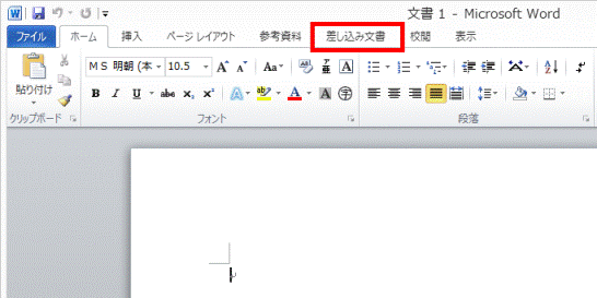 - 「差し込み文書」タブをクリックします。