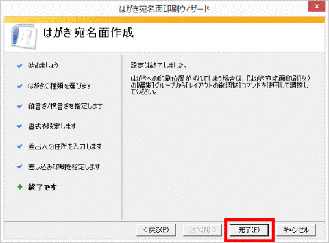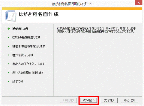 - 「はがき宛名面印刷ウィザード」が表示されます。