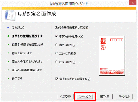 続けて、「はがきの宛名面を作成する」へ進みます。
