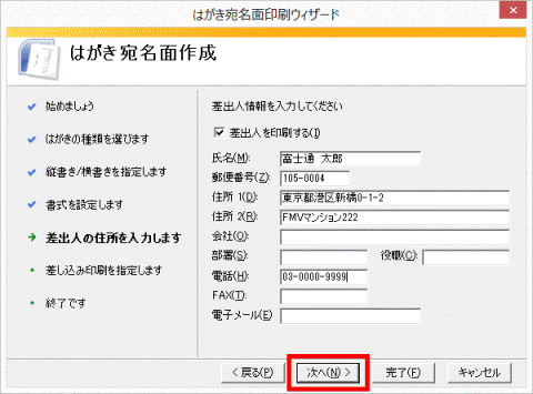 - 「差出人情報を入力してください」と表示されます。