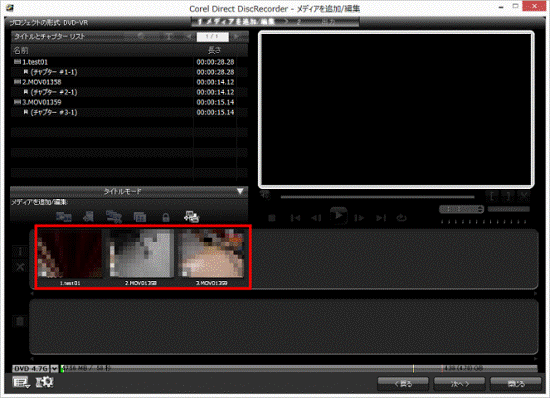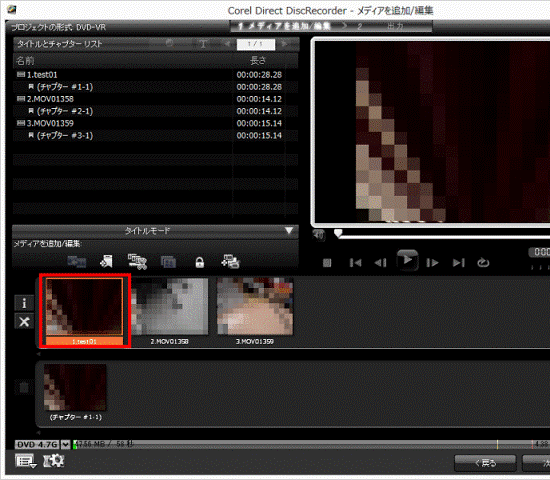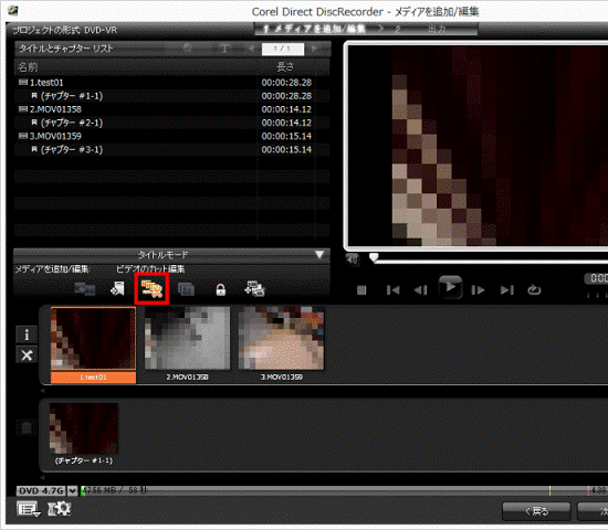 Corel Direct DiscRecorderのメディアリストに表示されているビデオ(動画)を編集します。