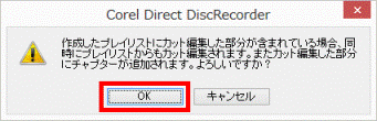 アドバイス「ビデオのカット編集機能を使ってトリムしたタイトルを別のタイトルに結合すると、ビデオセグメントがマージされます。」と表示された場合は、「OK」ボタンをクリックします。