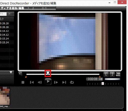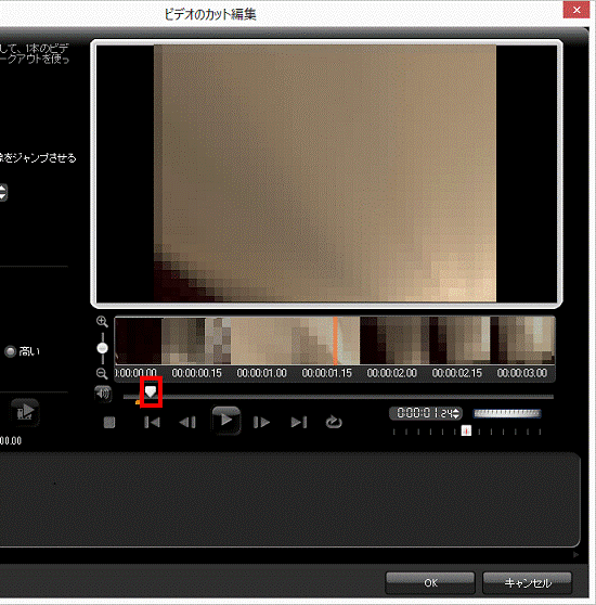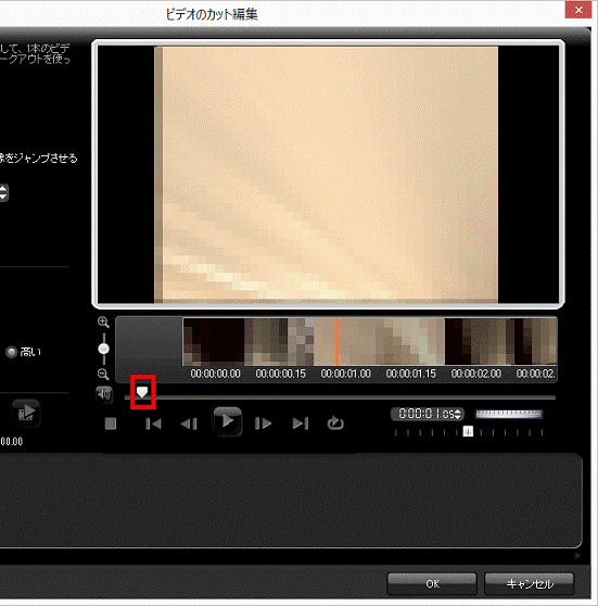 - 残したい映像の先頭へ、ジョグバーを移動します。