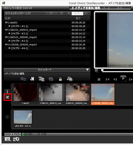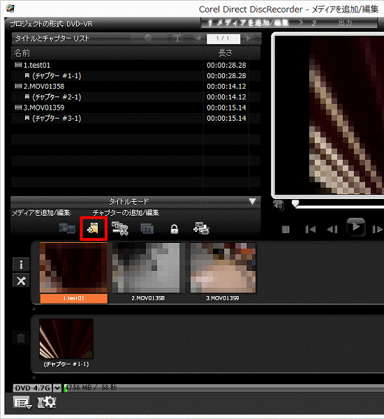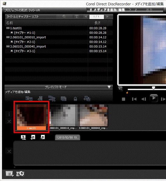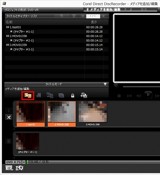 プレイリストモードでは、ビデオを結合したり、チャプターを追加したりできません。