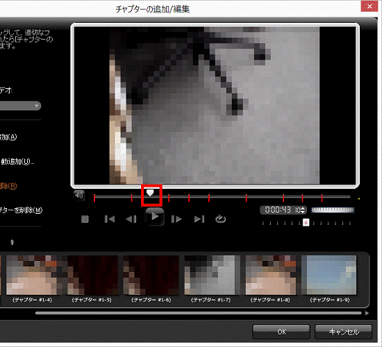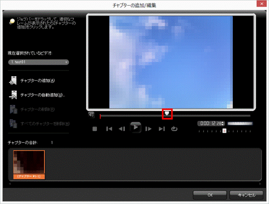 - チャプターを追加したい位置へ、ジョグバーを移動します。