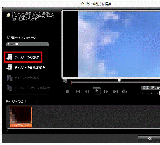 - 「チャプターの追加 / 編集」が表示されたことを確認します。