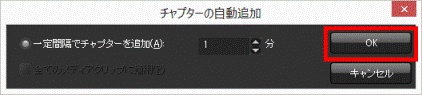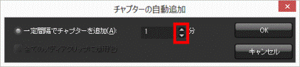 「一定間隔でチャプターを追加」欄の「▼」ボタンや「▲」ボタンをクリックし、お好みの時間を設定します。
