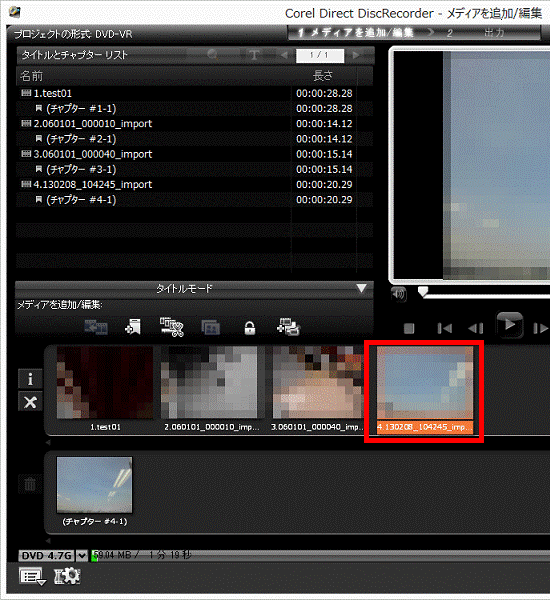 メディアリストに表示されているビデオを編集し、必要な映像を選択します。