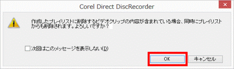 - 「作成したプレイリストに削除するビデオクリップの内容が含まれている場合、同時にプレイリストからも削除されます。」と表示されます。