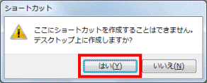 - 「ここにショートカットを作成することはできません。」と表示されます。