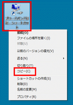 - 作成されたアイコンを右クリックし、表示されるメニューから「コピー」をクリックします。