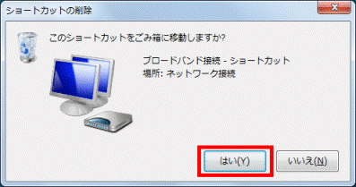 - 「このショートカットをごみ箱に移動しますか?」と表示されます。