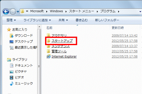 - 「スタートアップ」フォルダーをクリックして開きます。