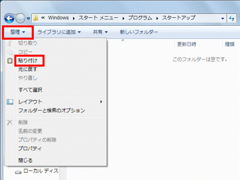 - 「整理」メニュー→「貼り付け」の順にクリックします。