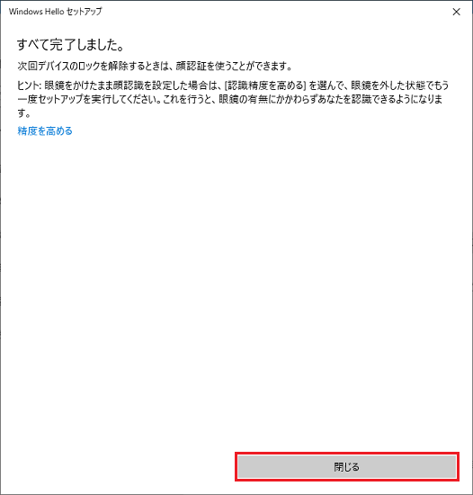 画面の指示に従ってまっすぐ画面を見続け、登録が完了するまでしばらく待ちます。 - 「すべて完了しました。」と表示されます。