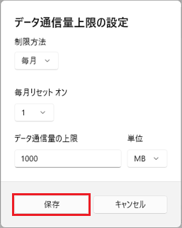 アドバイス- 「データ通信量の上限」の単位は「MB」または「GB」から選択できます。
