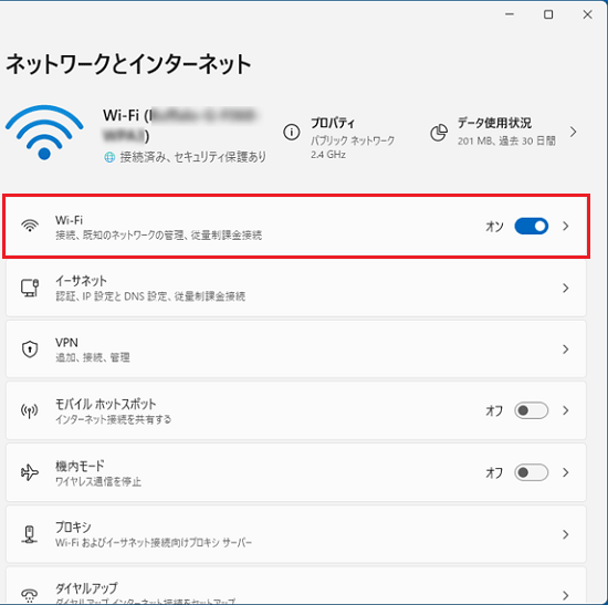 表示されたネットワークの一覧から、従量制課金接続を解除するネットワーク名をクリックします。