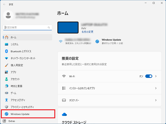 アドバイス「Windows Update」が表示されていない場合は、「設定」の左にある「