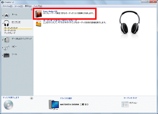 音楽CDは、次のQ&Aをご覧になり、Windows Media Playerで作成してください。