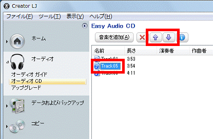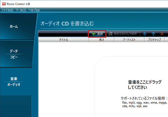 - Roxio Creator LJ / LJBで作成した音楽CDには、後から音楽の追加はできません。