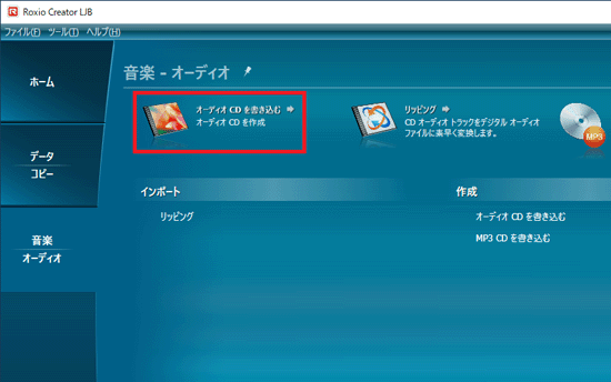 [Roxio Creator LJ / LJB] 音楽CDからパソコンに音楽を取り込む方法を教えてください。