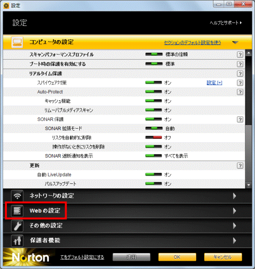 手順1フィッシング対策やNortonセーフウェブを有効にする
