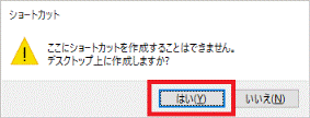 4. 「ここにショートカットを作成することはできません。」と表示されます。