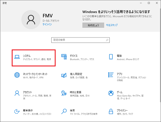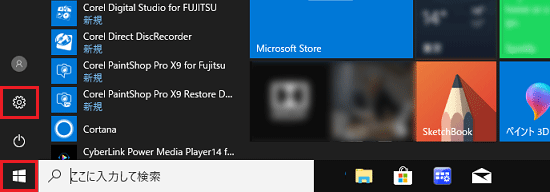 - 「スタート」ボタン→「設定」の順にクリックします。