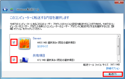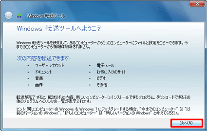 [Windows 7] Windows 転送ツールを使って、古いパソコンのデータを、新しいパソコンにコピーする方法を教えてください。