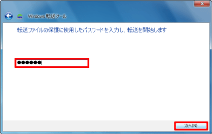 - 古いパソコンでパスワードを設定した場合は、そのパスワードを入力し、「次へ」をクリックします。