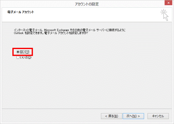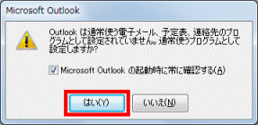 Outlook 2010を通常使うメールソフトとして設定するときは「はい」ボタン、設定しないときは「いいえ」ボタンをクリックします。